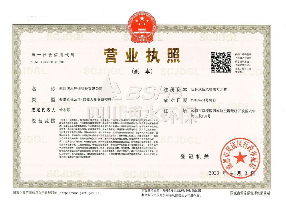 博水環(huán)保已成為四川省高新技術(shù)企業(yè)、四川省環(huán)保產(chǎn)業(yè)協(xié)會(huì)理事單位、中國(guó)環(huán)保產(chǎn)業(yè)協(xié)會(huì)會(huì)員,前后獲得70多項(xiàng)國(guó)家技術(shù)專利及軟件著作權(quán)、水污染治理甲級(jí)、環(huán)保設(shè)備制造甲級(jí)、污水處理設(shè)施運(yùn)維二級(jí)、市政工程總承包三級(jí)、環(huán)保工程三級(jí)、機(jī)電安裝工程三級(jí)等相關(guān)資質(zhì);通過了ISO9001/2015質(zhì)量/環(huán)境/健康、質(zhì)量服務(wù)AAA示范單位等體系認(rèn)證;